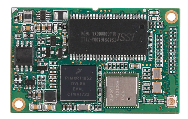 i.MX RT1052時(shí)鐘主頻高達(dá)600MHz,外設(shè)接口豐富,支持UART、SPI、SDIO、IIC等接口。M1052核心板外擴(kuò)16MB SDRAM,128M電子磁盤,并且板載BCM43362Wi-Fi芯片。BCM43362芯片支持SDIO和SPI兩種通信方式。BCM43362并且支持熱點(diǎn)和站點(diǎn)兩種模式,因此不論是站點(diǎn)還是熱點(diǎn)開發(fā),M1052一塊核心板完全OK。如圖 2所示為M1052 Wi-Fi核心板。