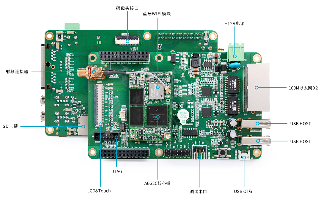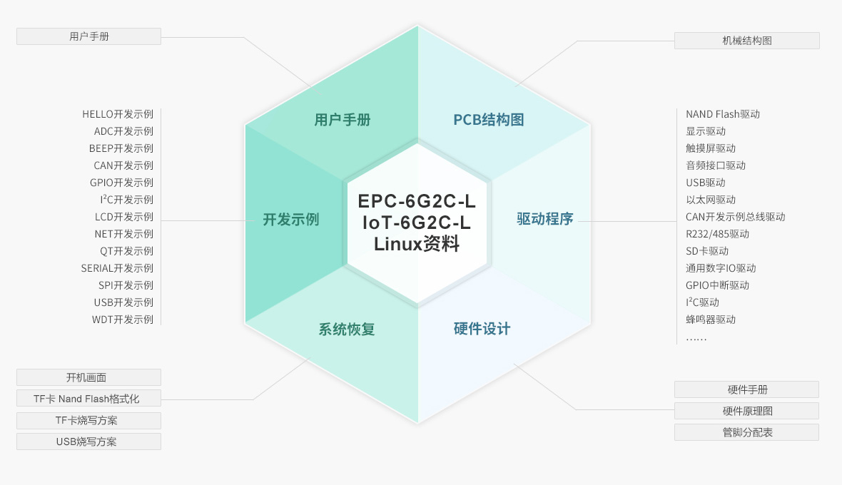 支持CAN、UART、以太網(wǎng)、USB、JTAG、CSI等多種數(shù)據(jù)通訊接口。EPC-6G2C-L與IoT-6G2C-L僅核心板和無線接口差異, 以下配圖用IoT-6G2C-L做為圖例。