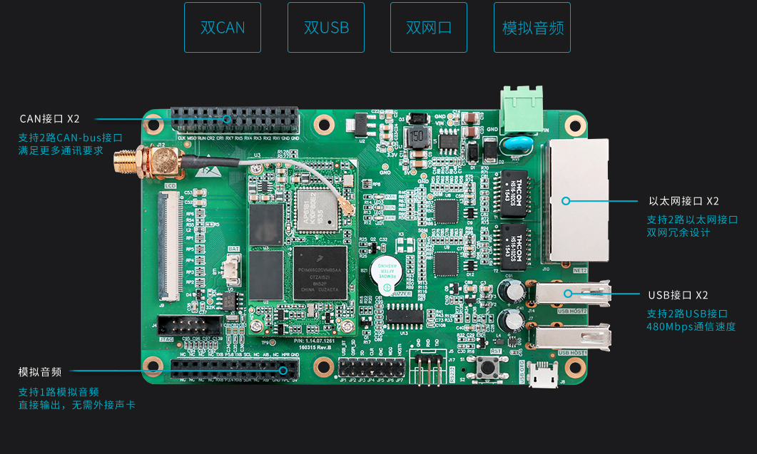EPC-6G2C-L/IoT-6G2C-L集成2路百兆以太網(wǎng)、2路CAN-bus、2路USB、1路模擬音頻等多種數(shù)據(jù)通訊接口。