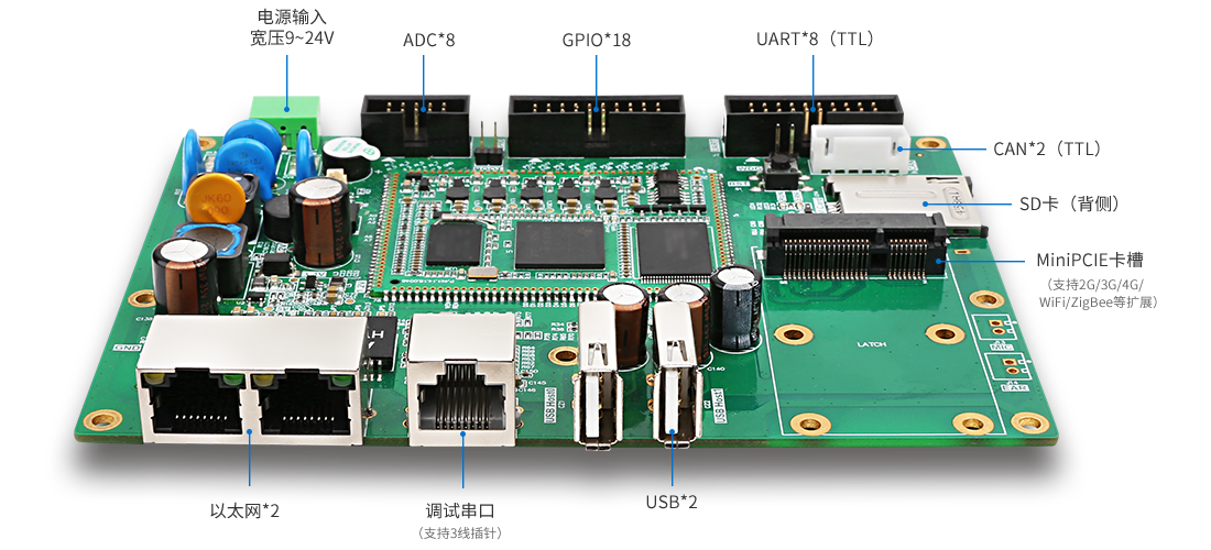 | UART TTL | 8路 | 以太網(wǎng) | 1路千兆1路百兆 |
